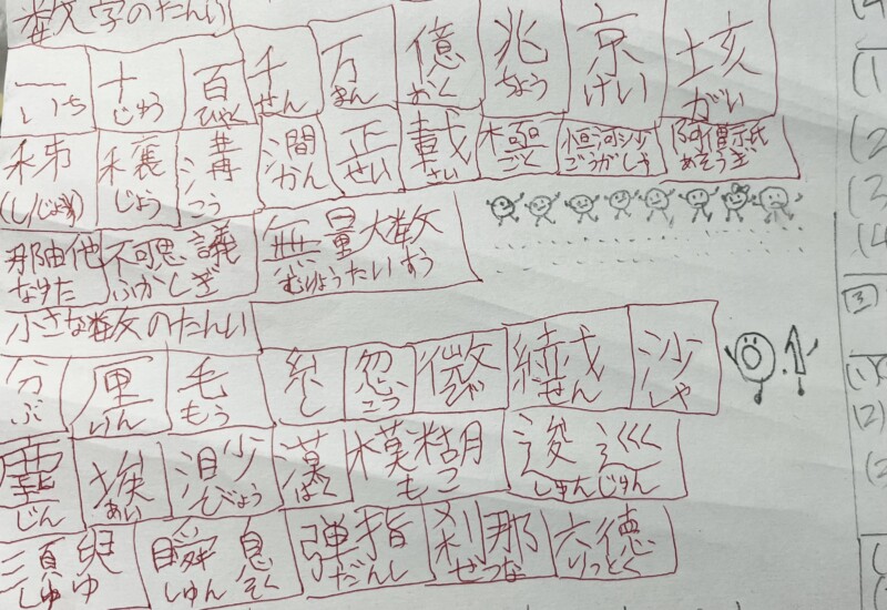 子供の勉強メモを見て、私もすごく勉強になっている。 大きな数の単位は知っているけど、小さな数の単位について半分以上知らなかった。もしかしたら習ったのか...